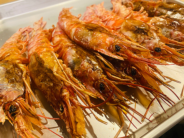 大量の有頭海老をドーンと塩焼きに!